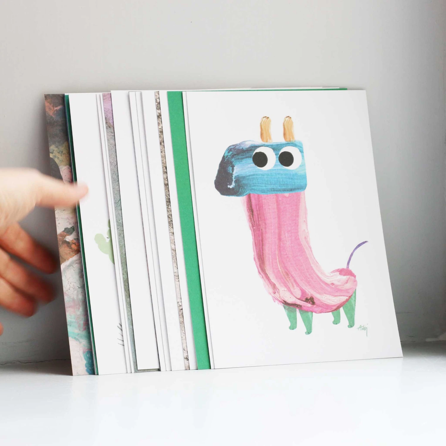 Our new Art Card Pack contains 20 of our classic Paper Pack cards as well as some fun new motifs. The mixed pack of customer and team favorites can be used as letter cards, note cards or they can be framed for the wall.