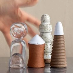 Each vase, made here at the studio, is first blown into form on an iron pipe and then opened and shaped using various tools – making each one unique.