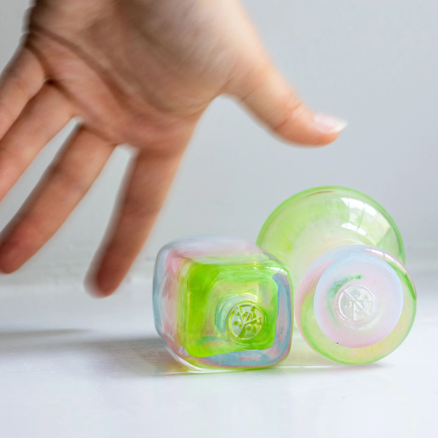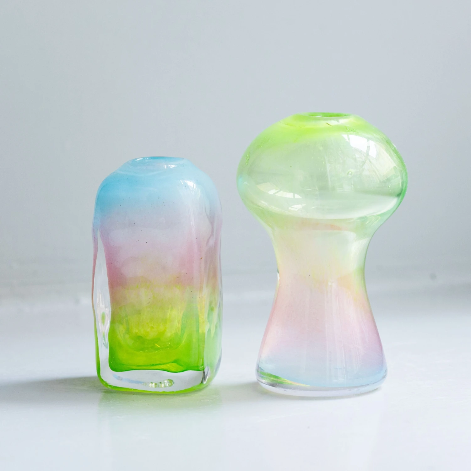 Please note: Not suitable for hot liquids. This is a one-off duo. You get the EXACT two vases you see in the photos.