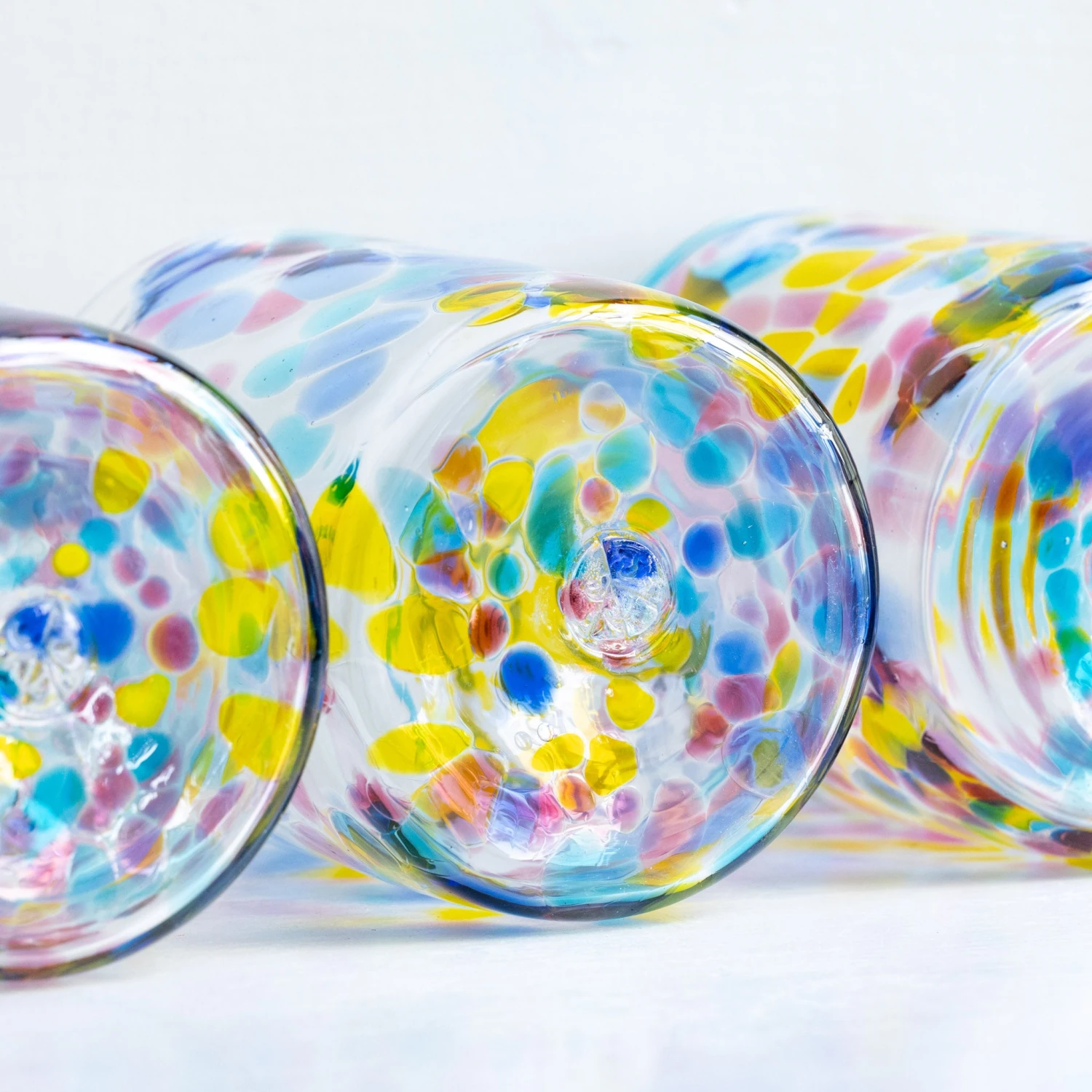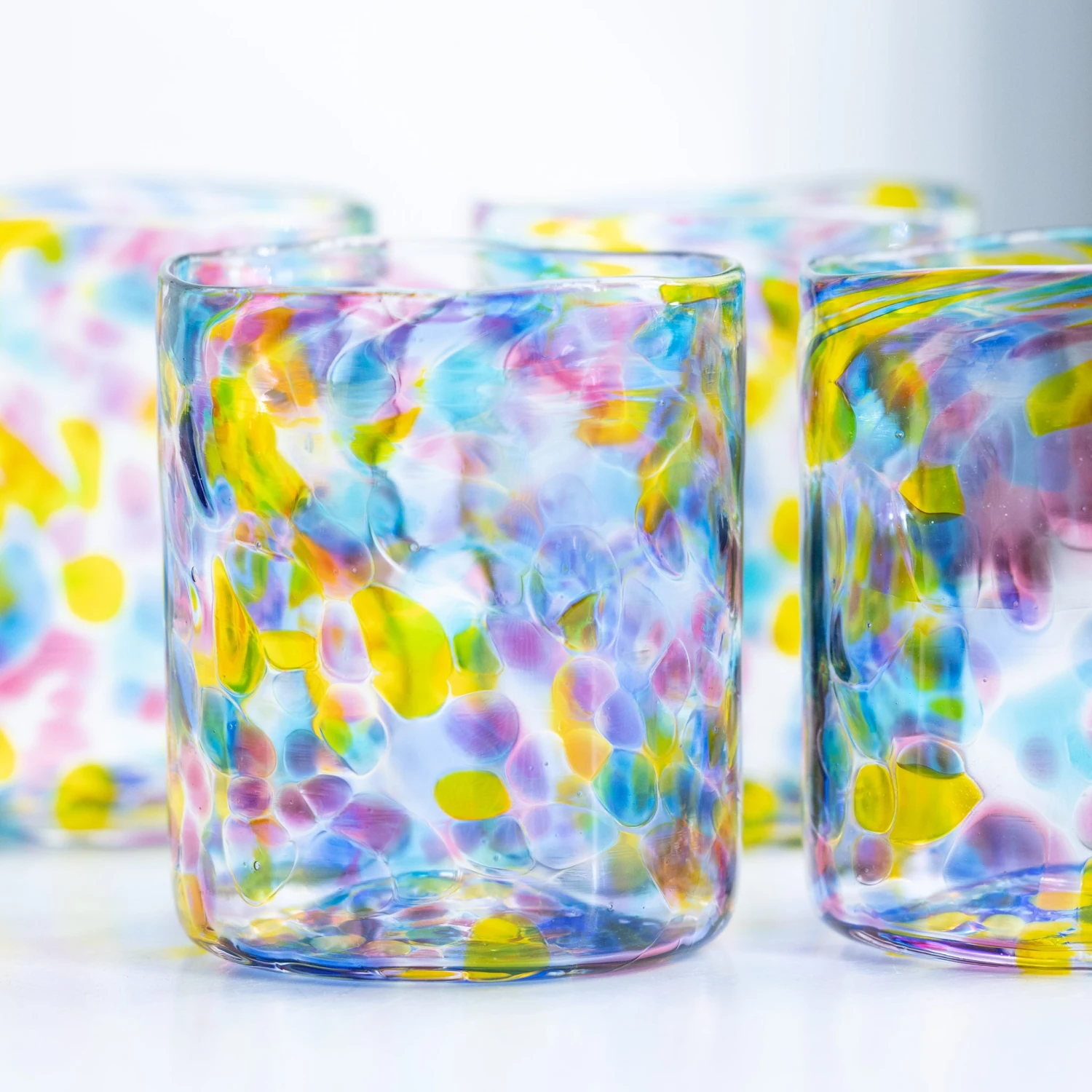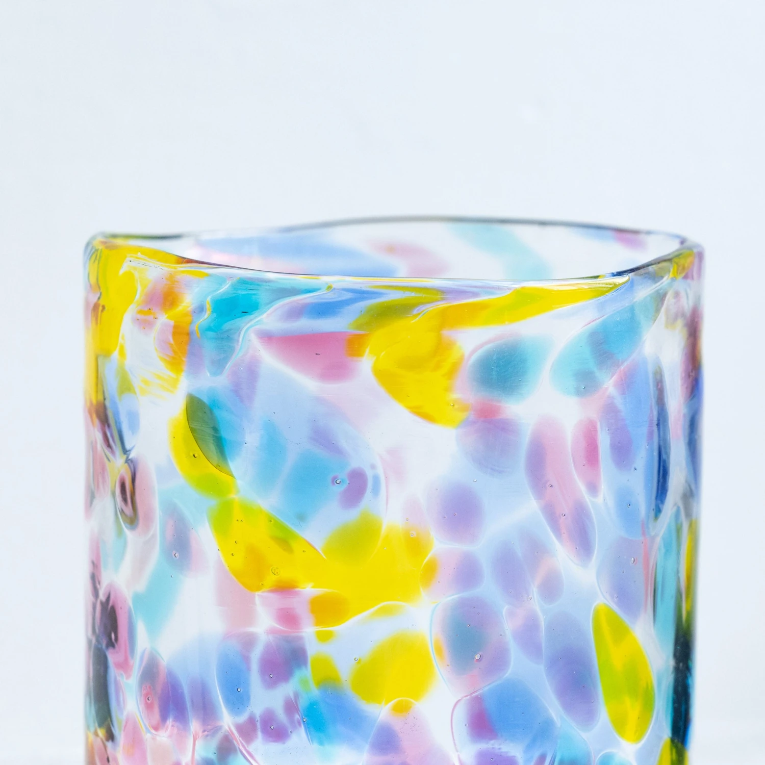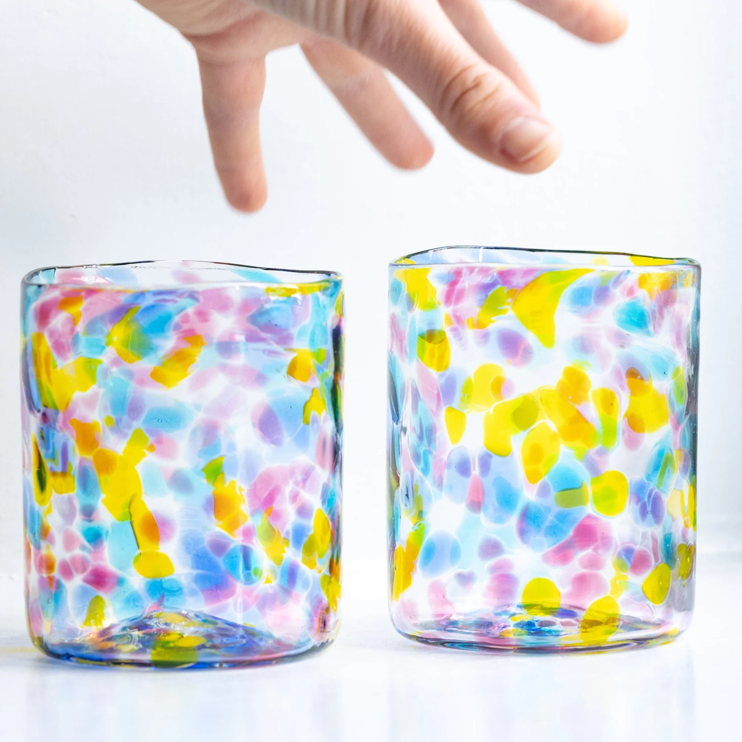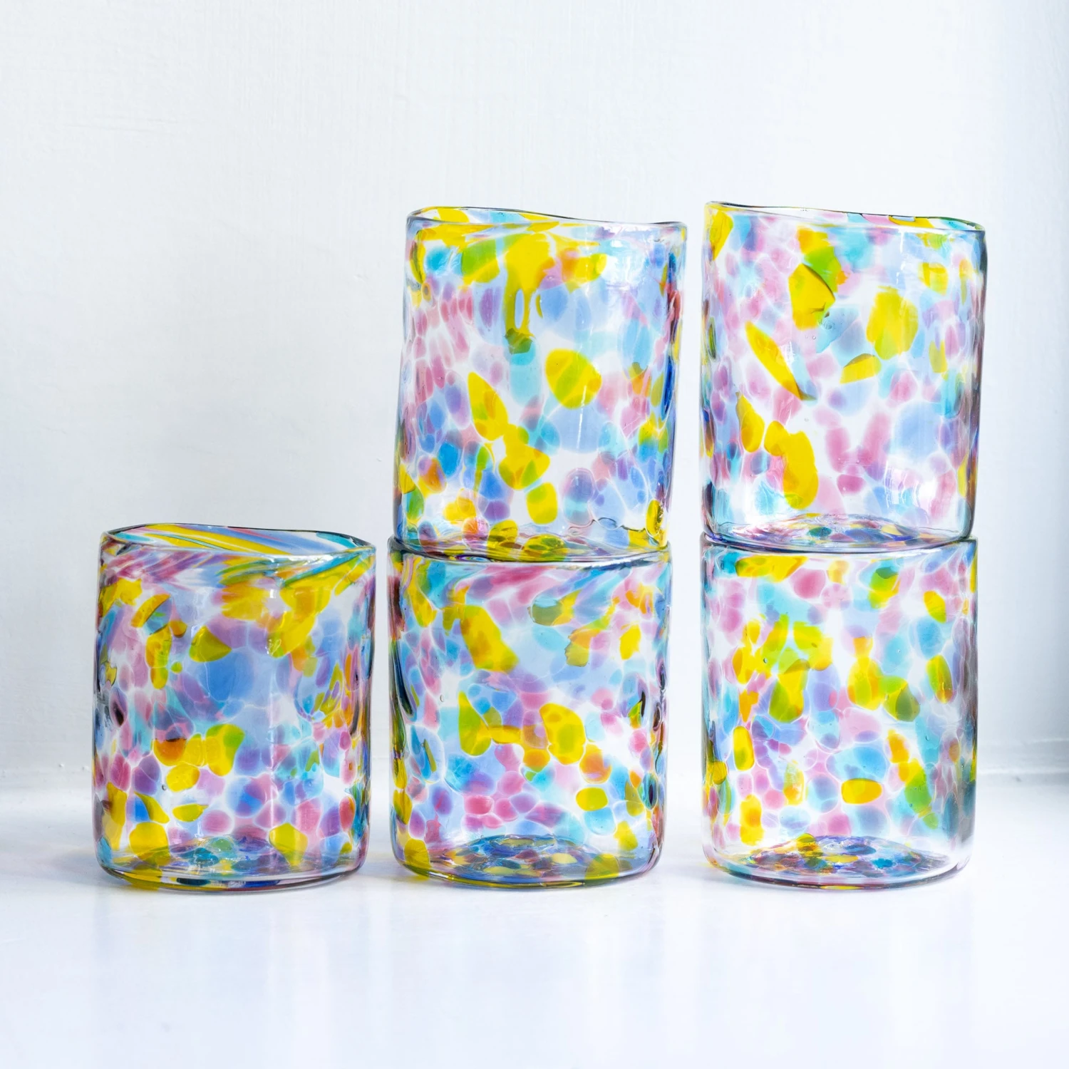 Our Gem Glass is a colourful, unique tumbler full of soft transparent colors. Reminiscent of the cast light through a stained glass window, each glass is mouth-blown and stamped one at a time in our own Copenhagen hot shop – no two are exactly alike.