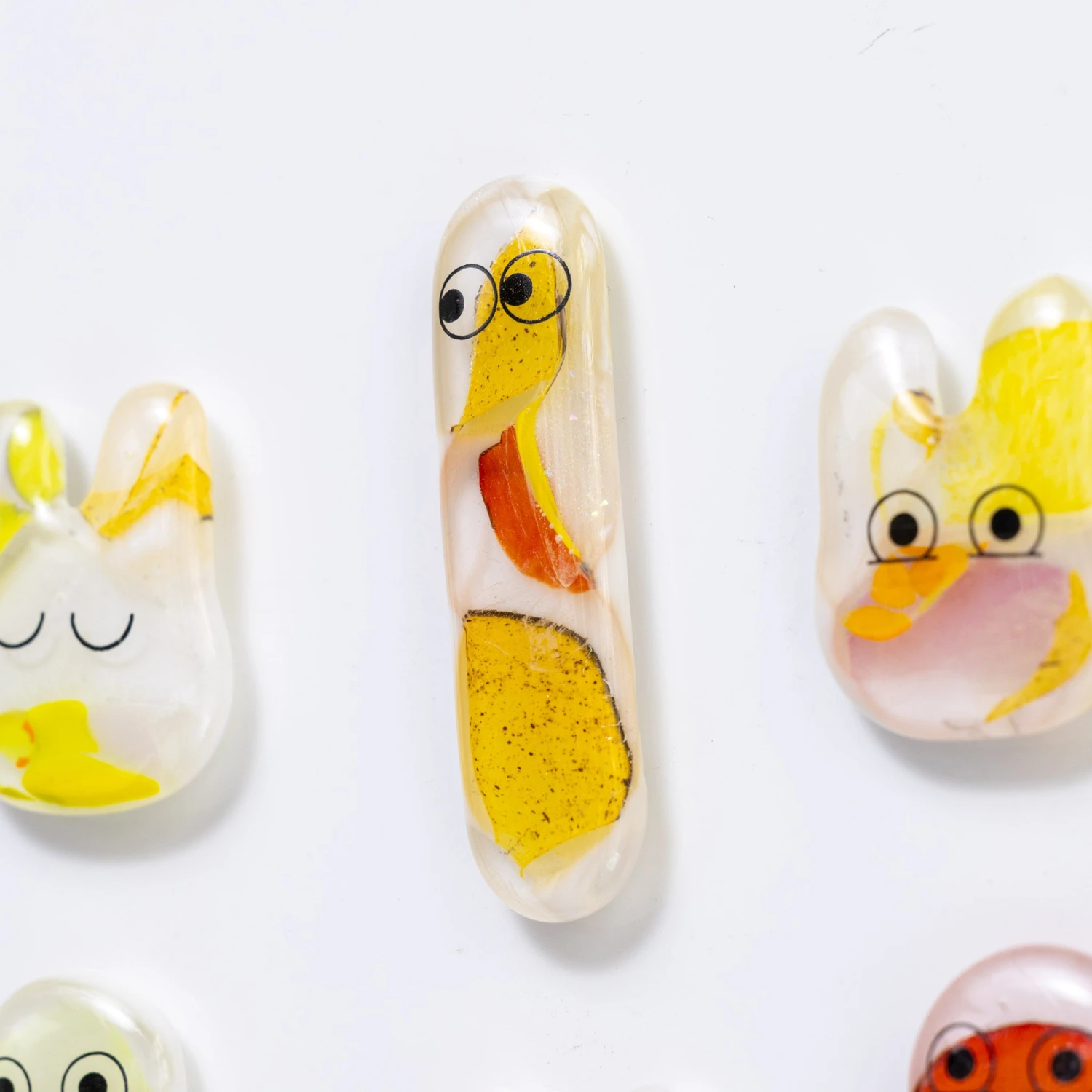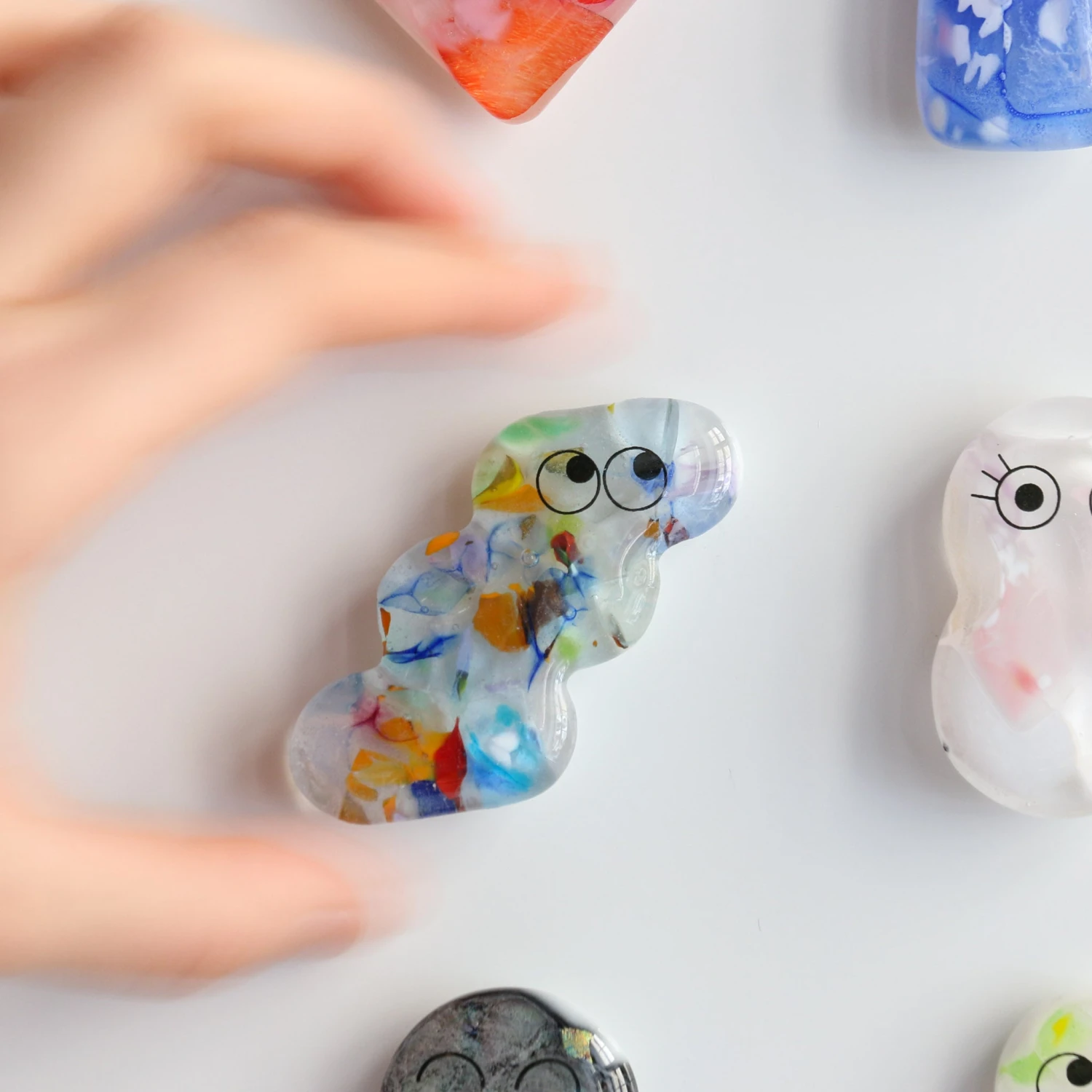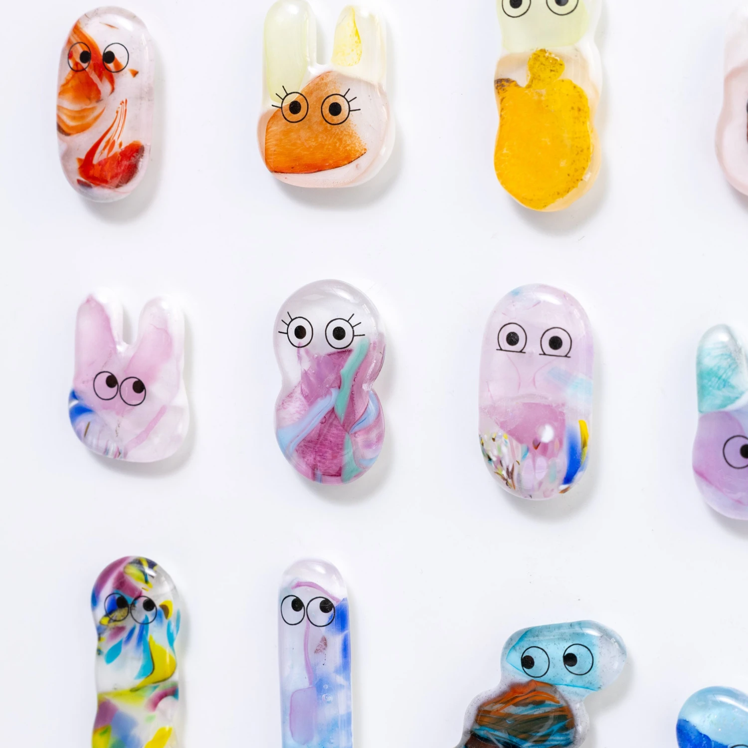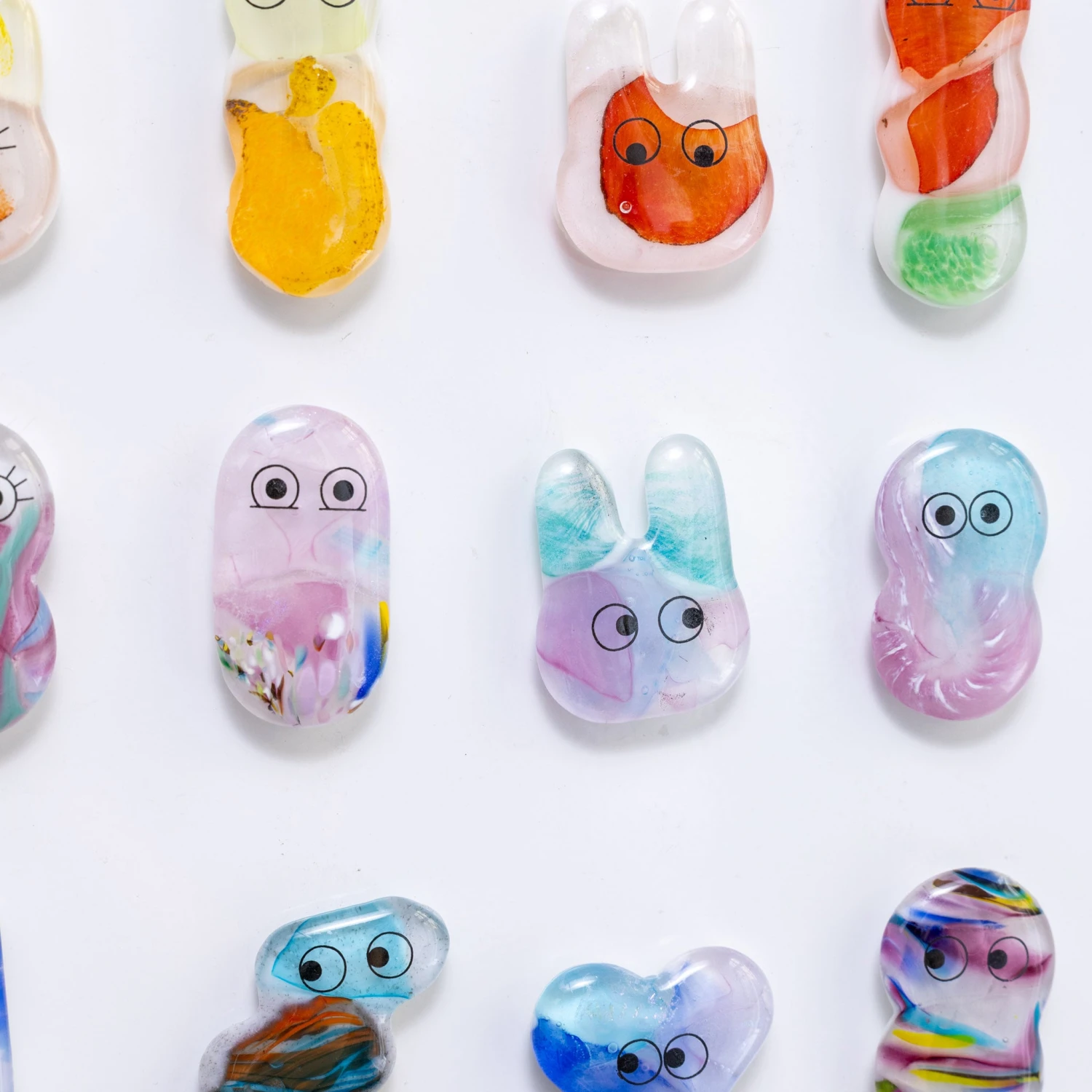 Made with recycled glass in our Sea Lab studio, each Fuse Magnet is made by hand, one at a time. Once laid out in a mould, the glass is fused together in a fusing kiln, given a set of eyes and an extra strong magnet.