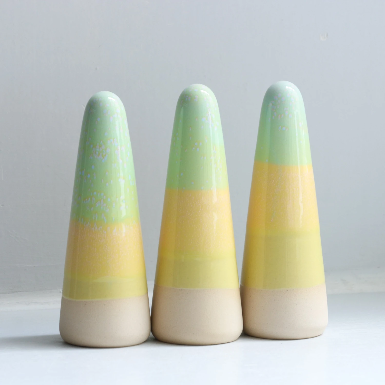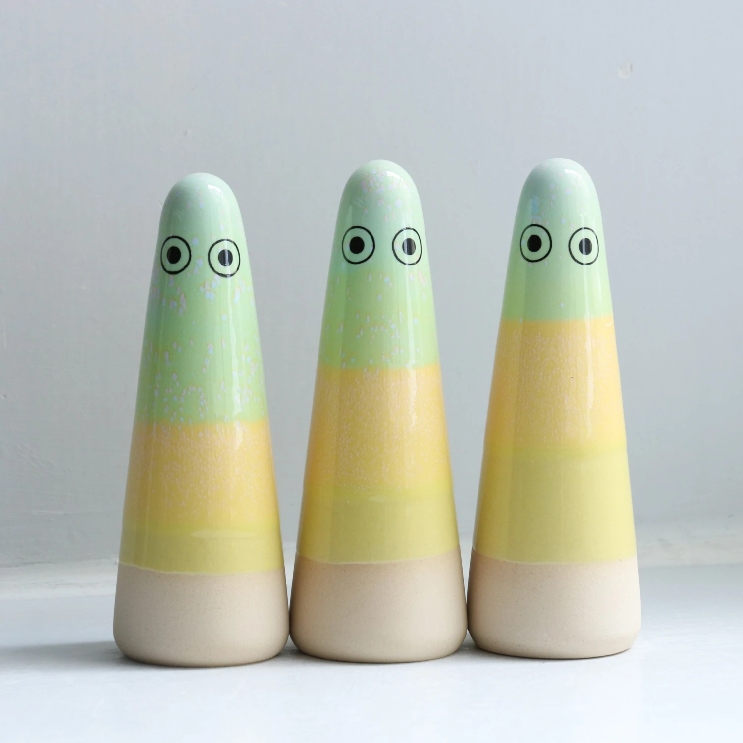 Ghosts quietly inhabit your living space and are useful as lucky talismans, ring holders or decorative objects. Each Ghost is unique, hand thrown, glazed, decorated and low-fired in the kiln three times.