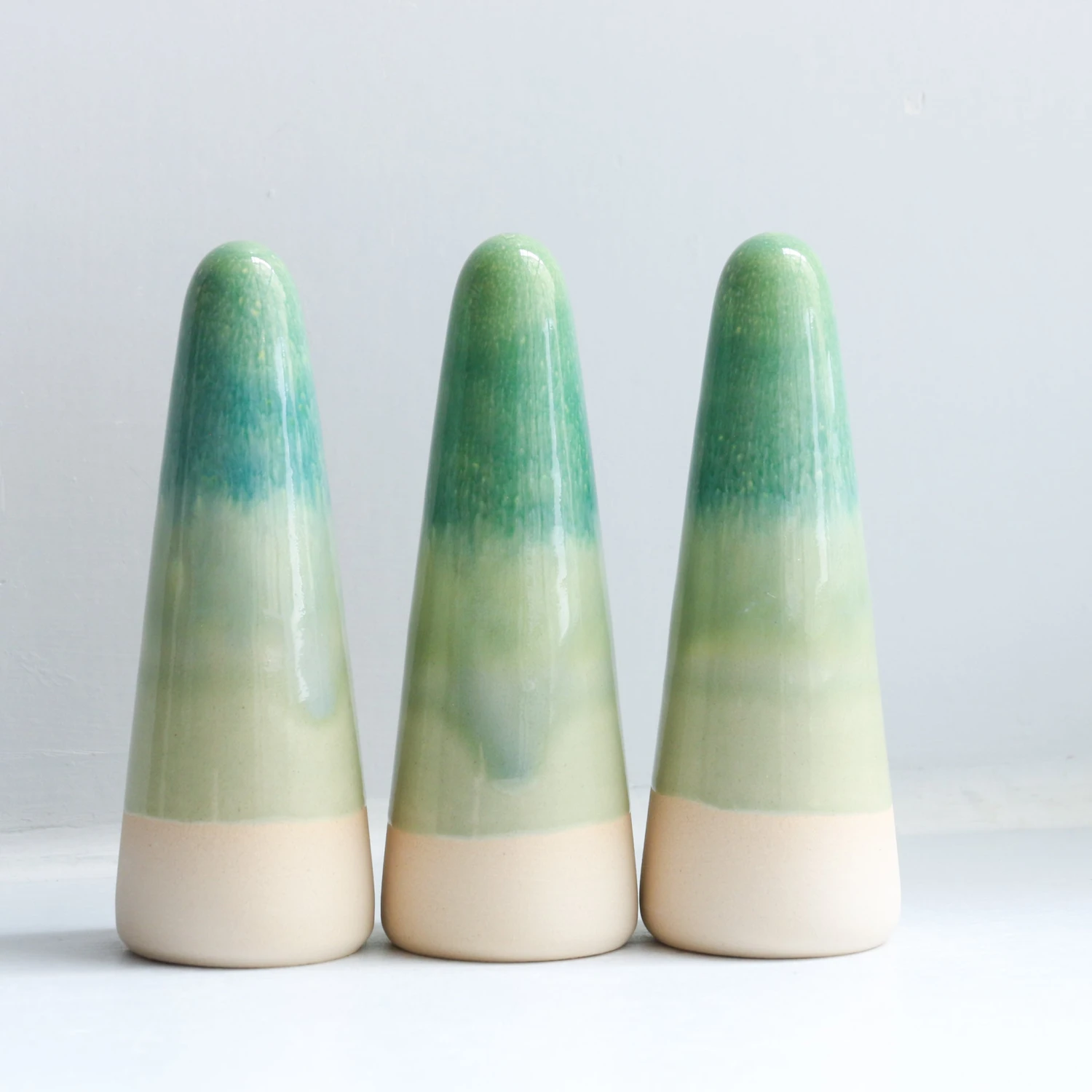 Ghosts quietly inhabit your living space and are useful as lucky talismans, ring holders or decorative objects. Each Ghost is unique, hand thrown, glazed, decorated and low-fired in the kiln three times.