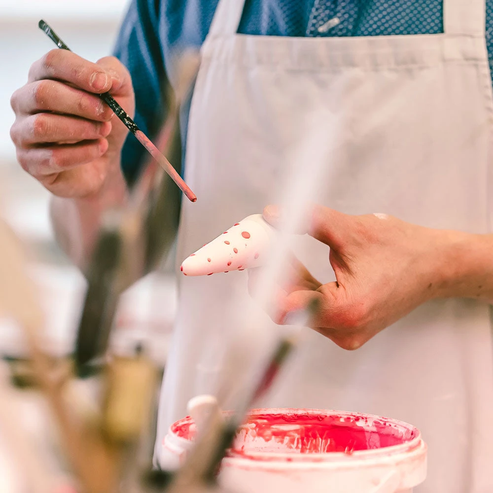 Inspired by the Shinto belief that everything has a soul – even a lump of clay – each Ghost is thrown in earth dug clay and given given a breath of life with a pair of ever staring eyes.