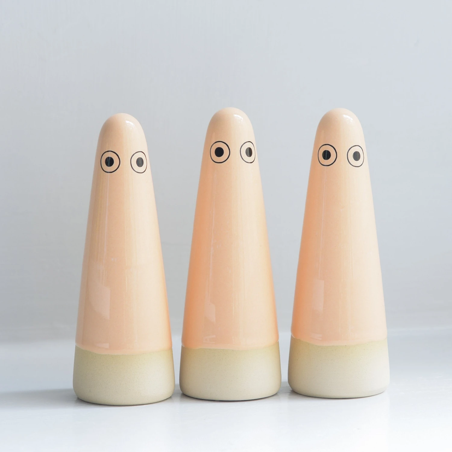 Ghosts quietly inhabit your living space and are useful as lucky talismans, ring holders or decorative objects. Each Ghost is unique, hand thrown, glazed, decorated and low-fired in the kiln three times.