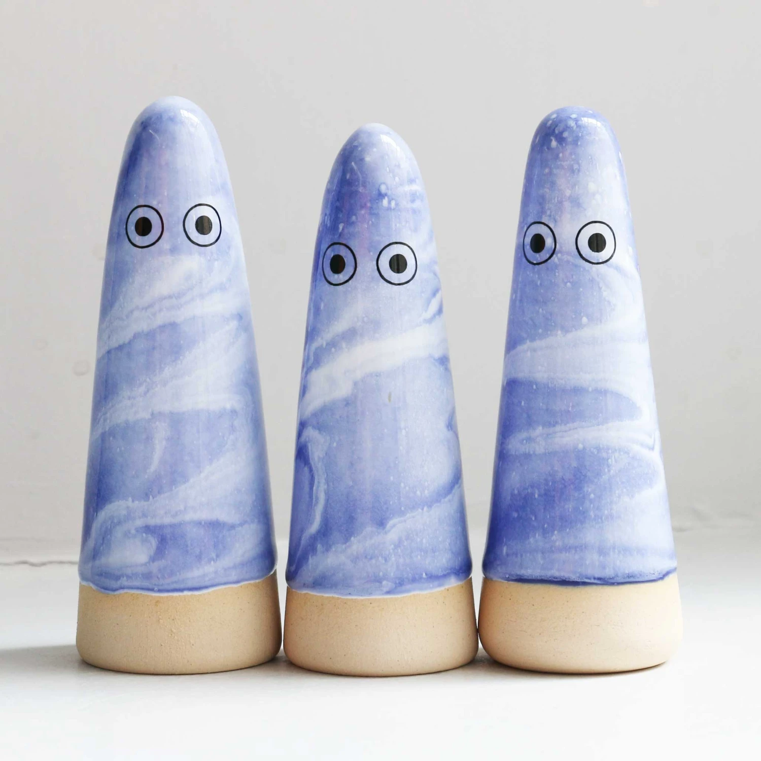 Each Ghost is unique, hand thrown, glazed, decorated and low-fired in the kiln three times.