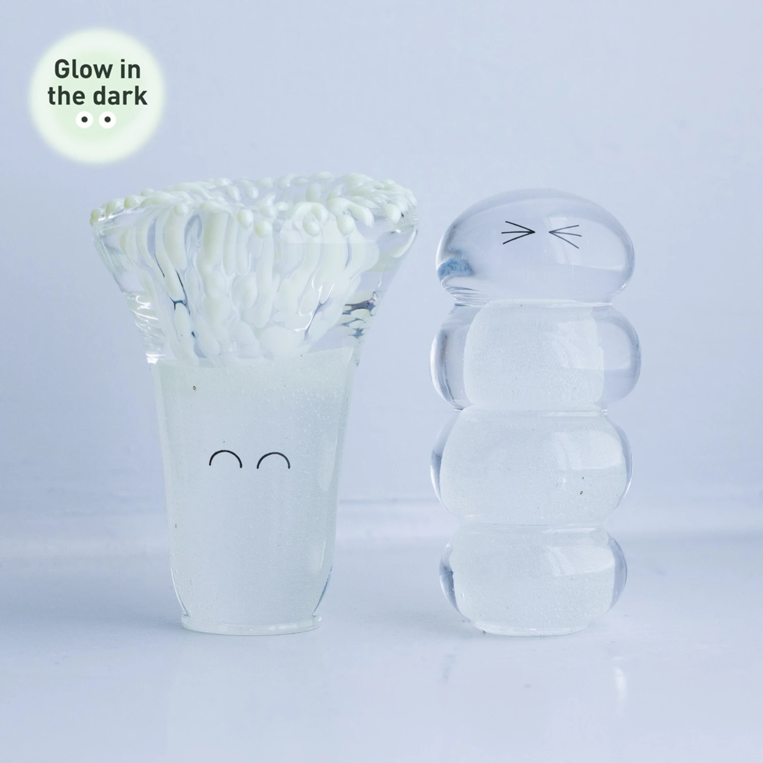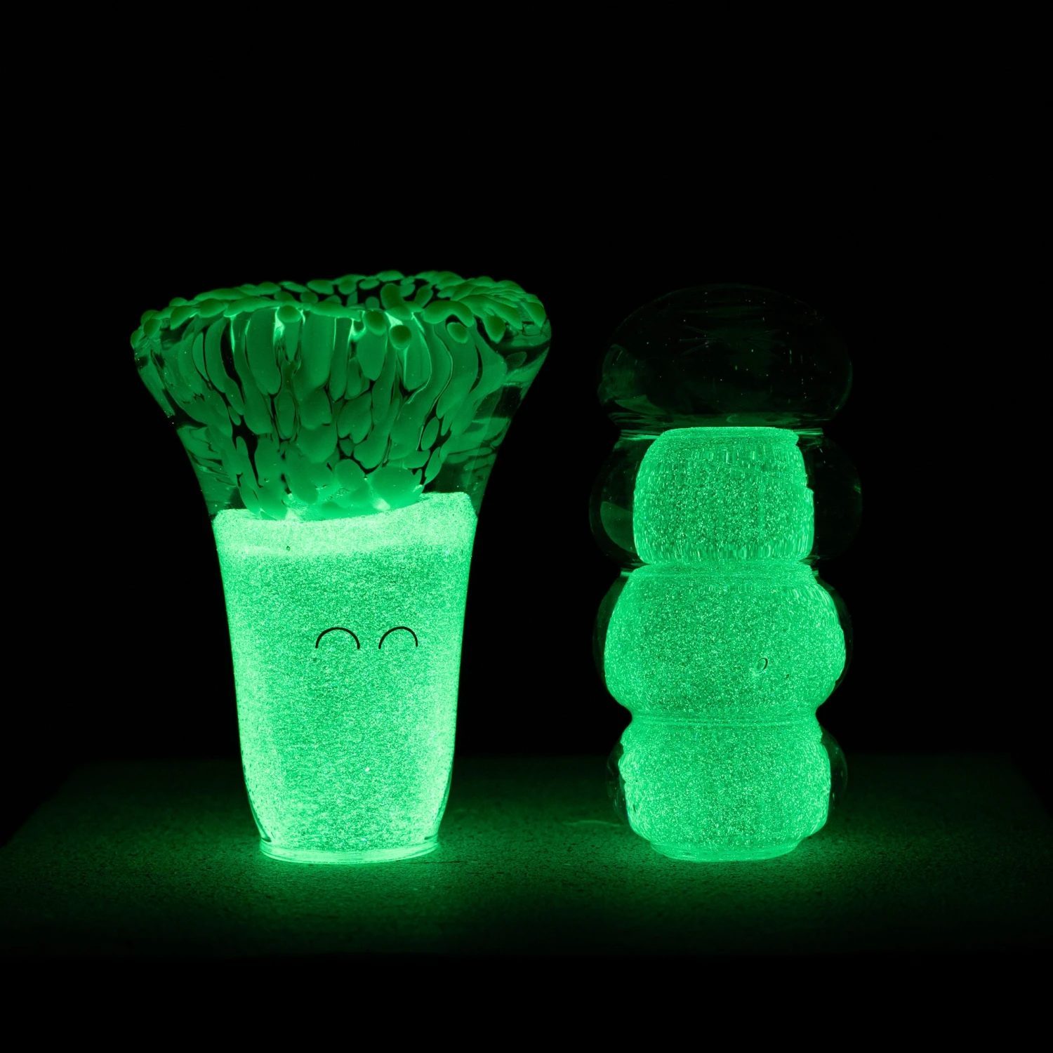Important: Glows for about 15-30 min after charging under a lamp. Each Blob is handmade. Not actual classic lead containing “crystal glass”.
