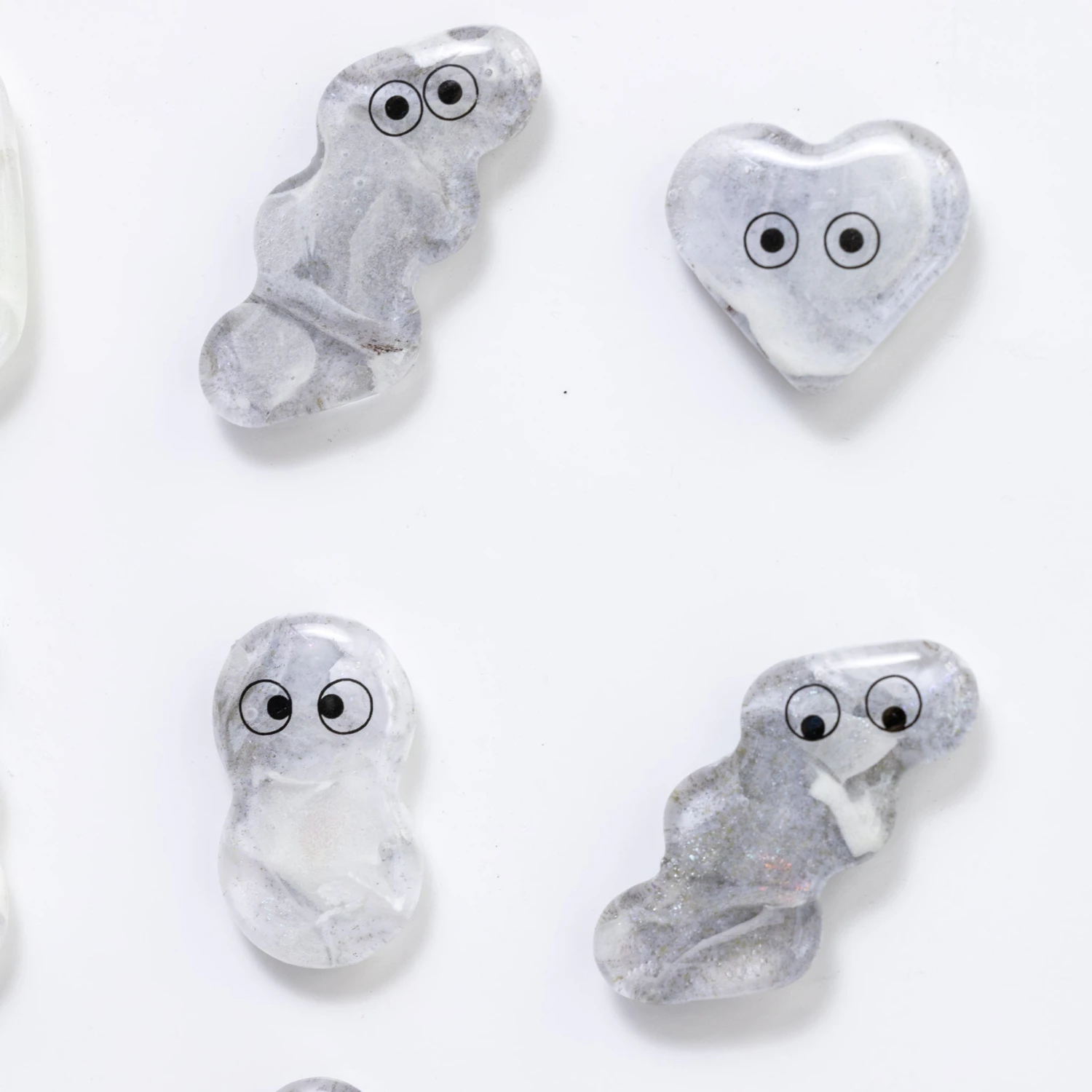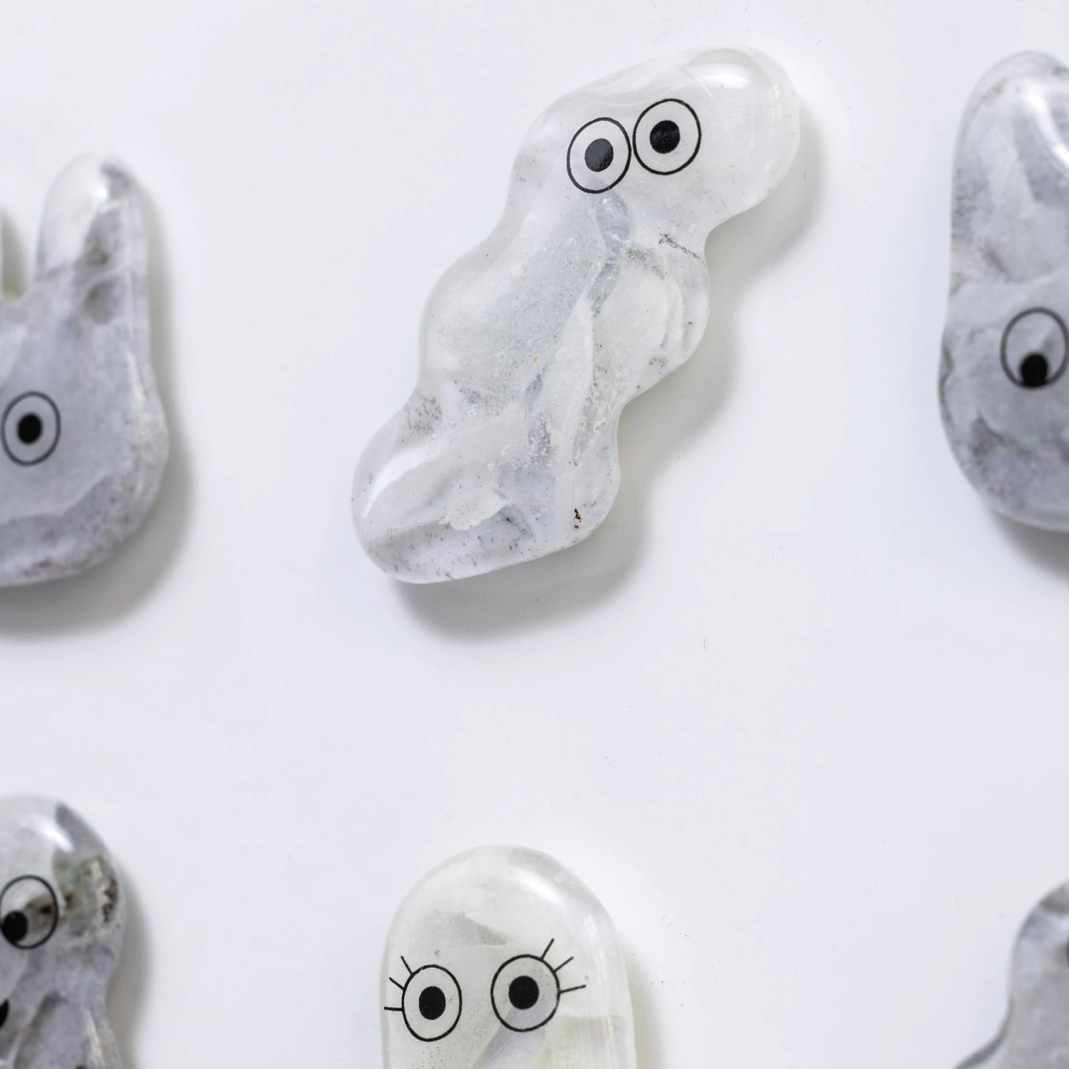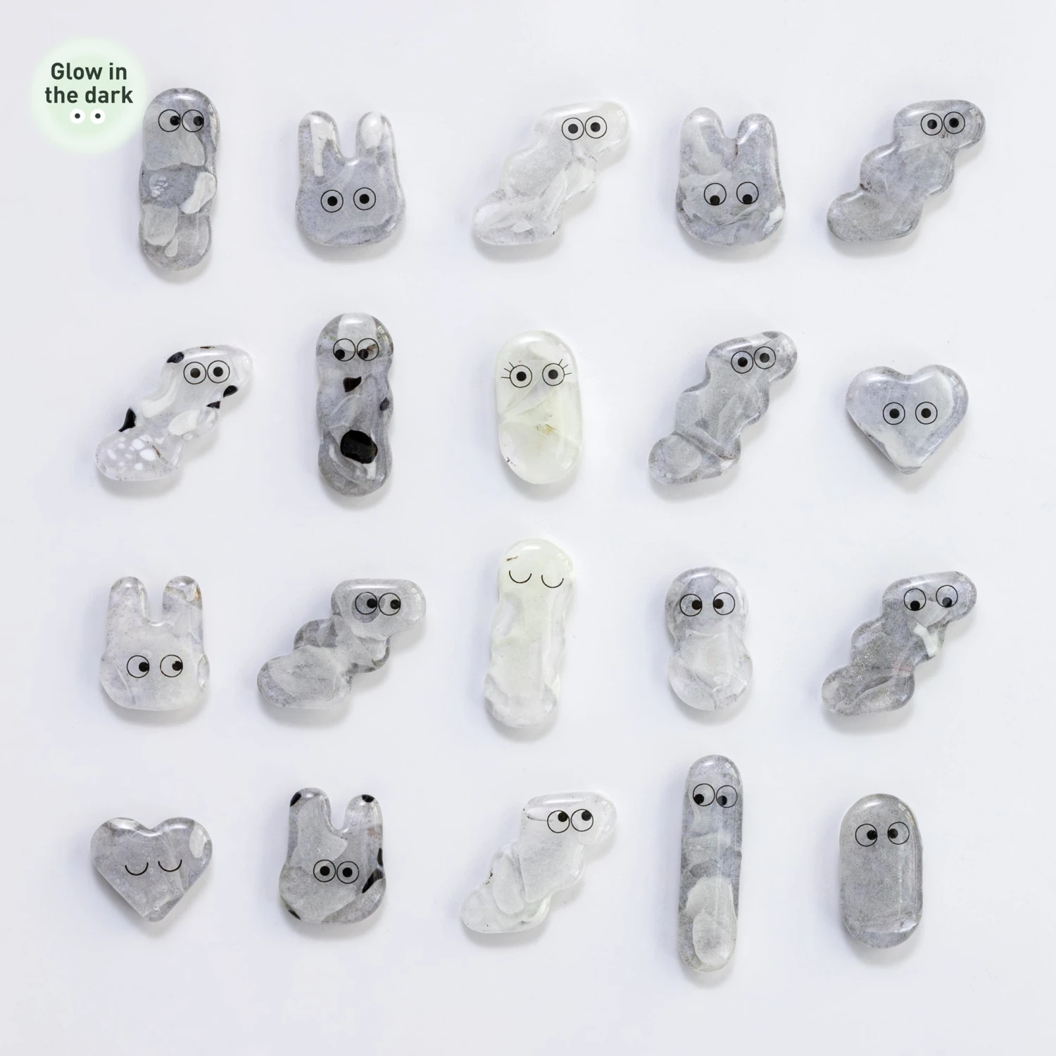Made using recycled glass in our Sea Lab studio, each Glowing Fuse Magnet is made by hand, one at a time. Once laid out in a mould, the glass is fused together in a fusing kiln, given a set of eyes and an extra strong magnet.
