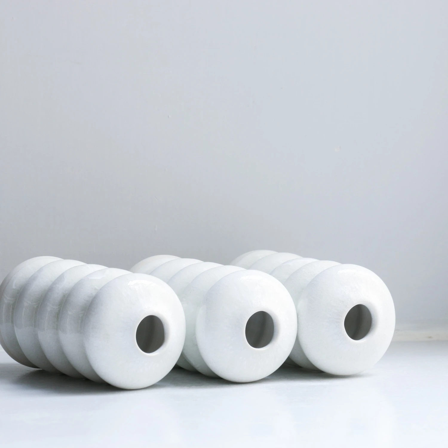 The Hana Vase series is a collection of hand-cast and hand-glazed porcelain vessels, the name inspired by popular Japanese flowers.