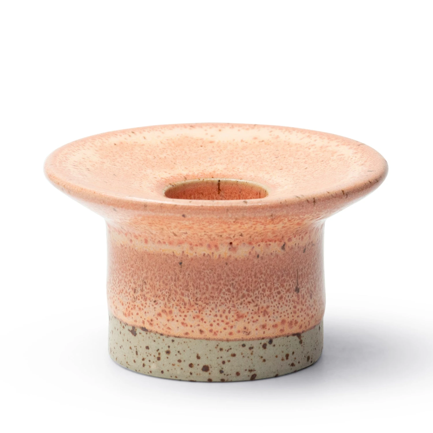 The slight bend allows our glazes to gently slide down the top during firing, creating a beautiful ring effect. The heavy foot keeps your candle safe and sturdy. As with our other handmade items, no two are ever completely alike.