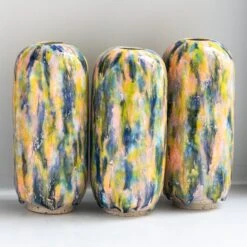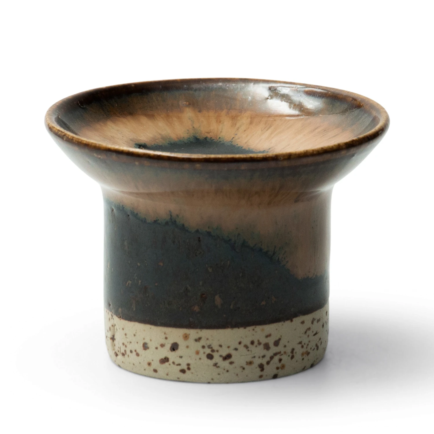The slight bend allows our glazes to gently slide down the top during firing, creating a beautiful ring effect. The heavy foot keeps your candle safe and sturdy. As with our other handmade items, no two are ever completely alike.