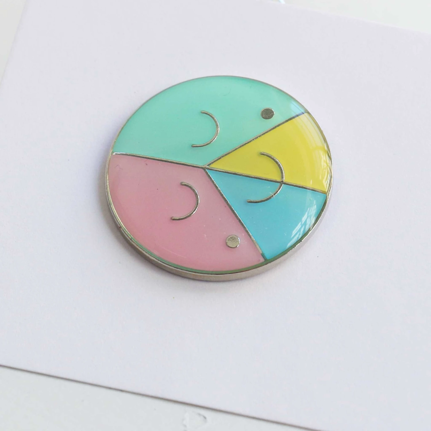 Metal Pin Series #1 features one of our original ceramic shapes, Pyramid, a pair of Ghost eyes, and a colorful little worm. Pick one or grab all three! Each pin includes a silicone backing to keep it locked tight.