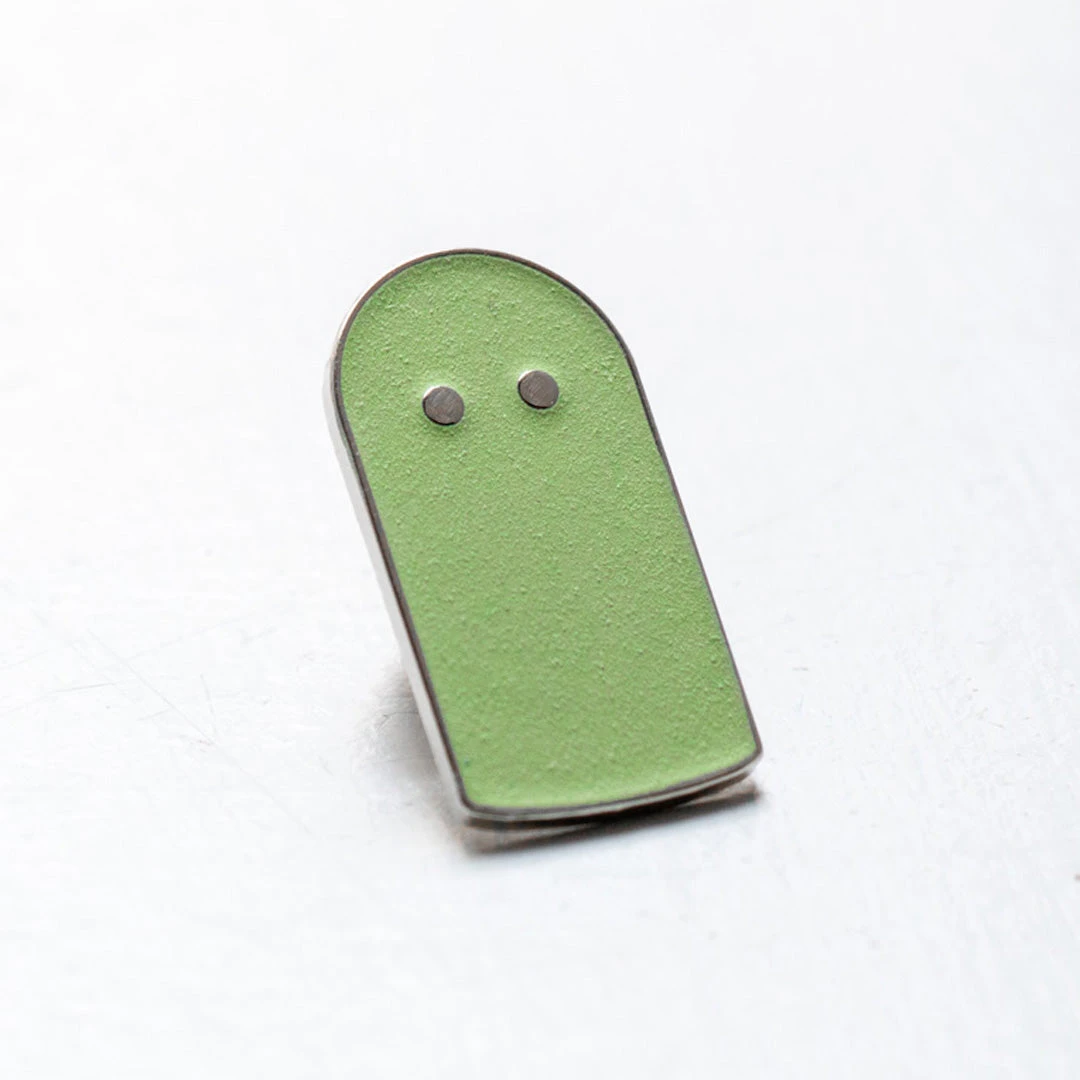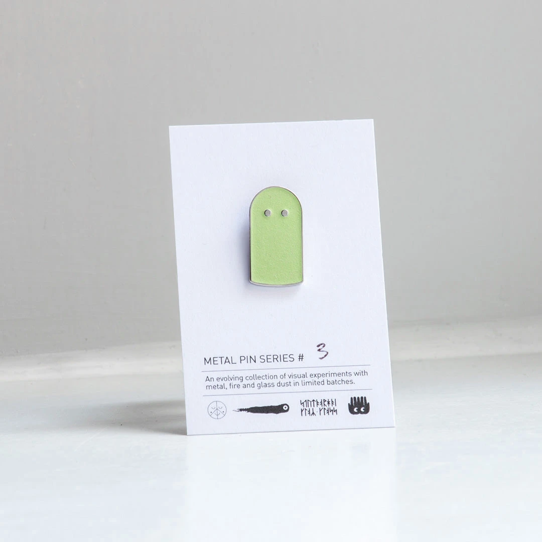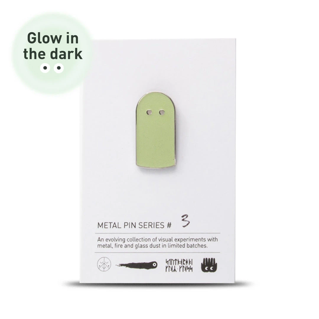 Metal Pin Series #3 is a collection of GLOWING pins. Charge the pin under a bright bulb (much like a glow-in-the-dark sticker) and it will give a soft white or green glow in the dark of night.