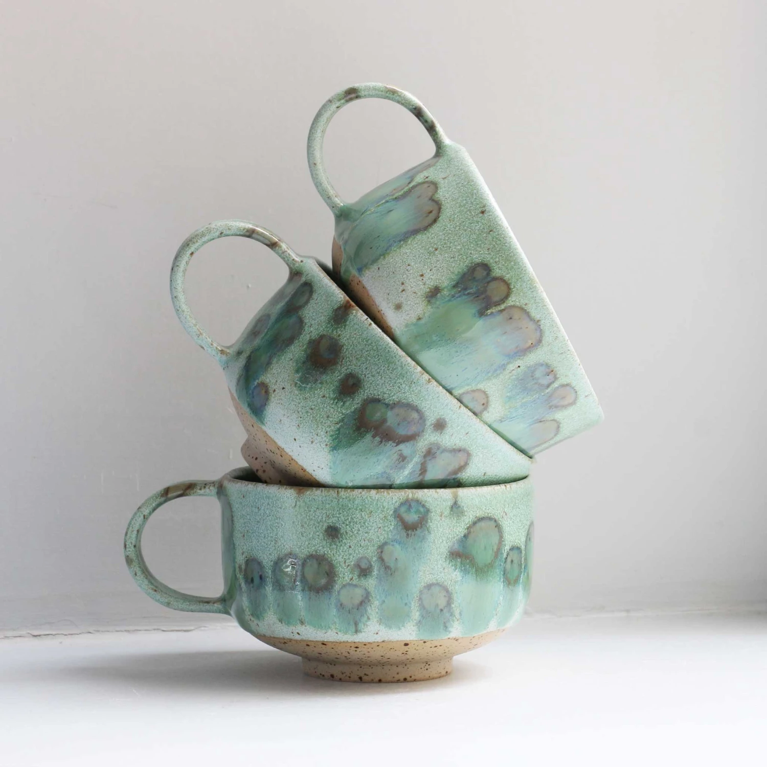 The Mion Mug, part of our Edo Series, is a hand thrown stoneware mug (with handle) available in various textured, earthy and colorful glazes. A departure from our Chug Mug, the Mion offers a rustic charm all its own, and holds more of the good stuff.