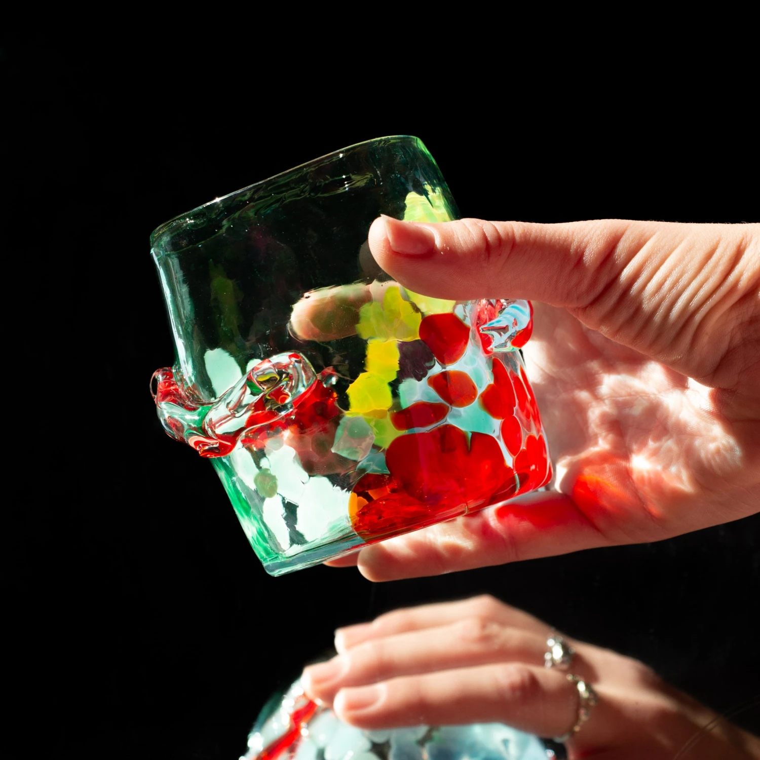 Each Misfit is mouth-blown and individually decorated. No two are alike. The team works with various tools, techniques and materials to achieve each glass’ final look.