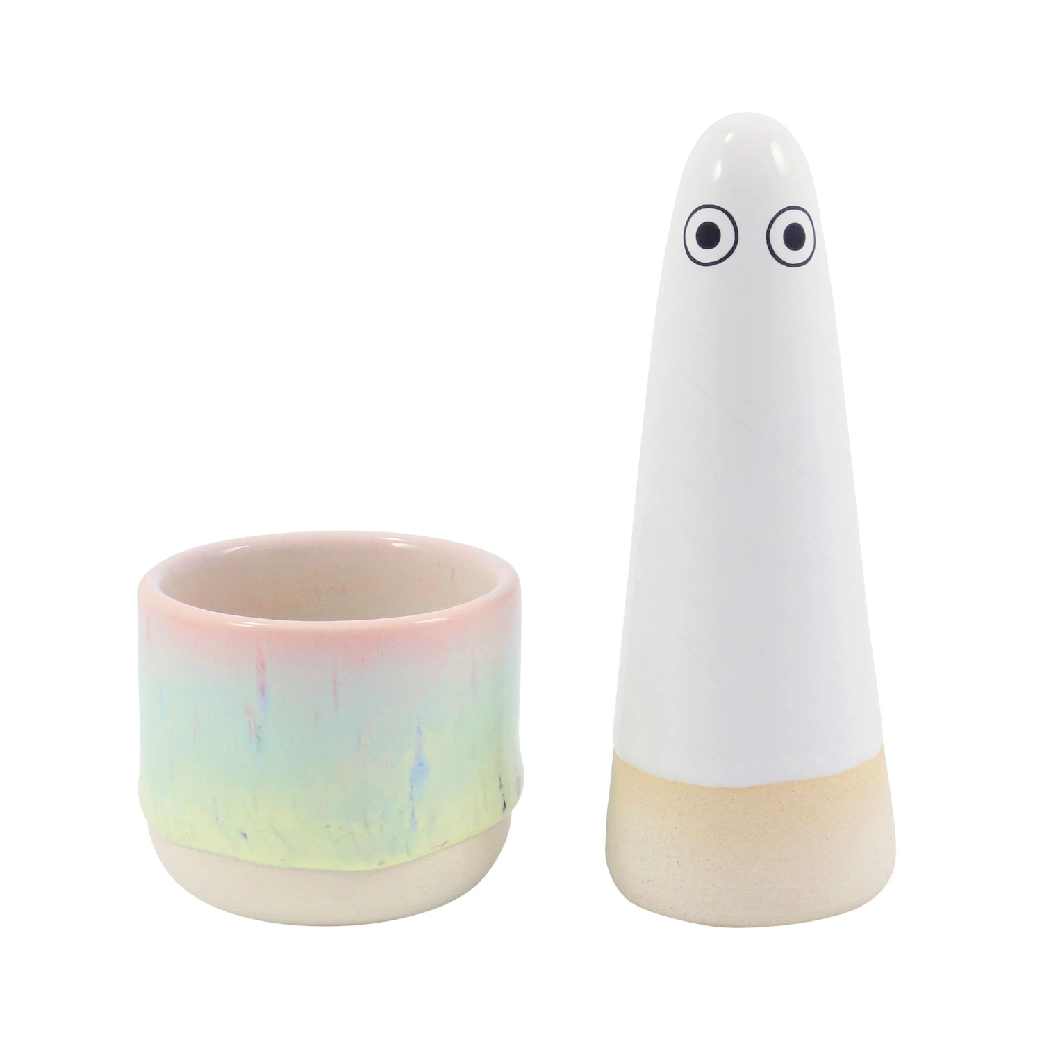 The Nip Cup, introduced in April 2017, is part of our Tokyo tableware series. Named for the tiny amount of fluid it holds (just over a shot), the Nip leads multiple lives as an egg cup, shot glass and/or salt cup.