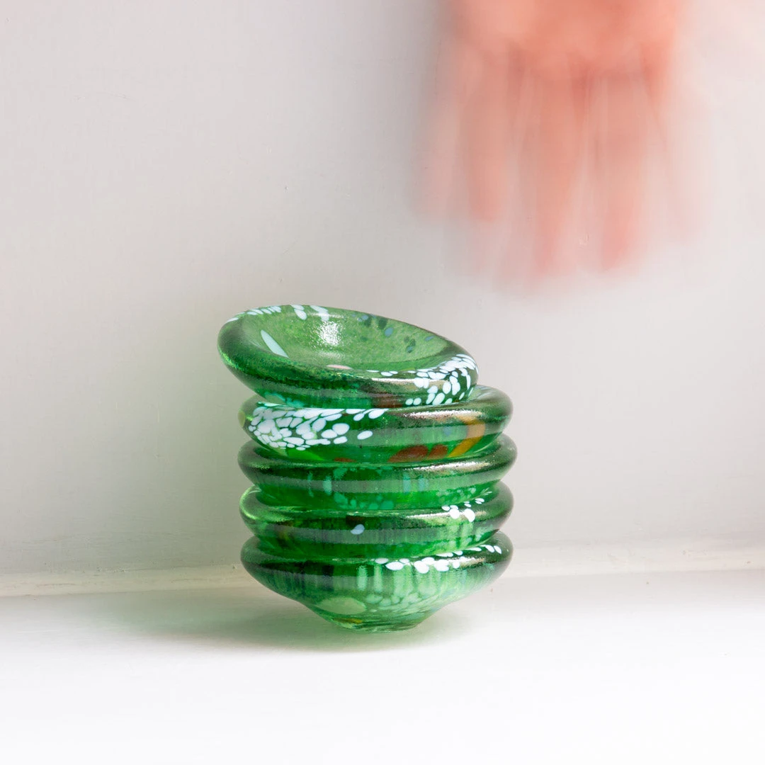 Hand formed with molten glass in our in-studio hot shop, the Puddle is perfect for spare change, jewellery or tiny treasures found on the shore.