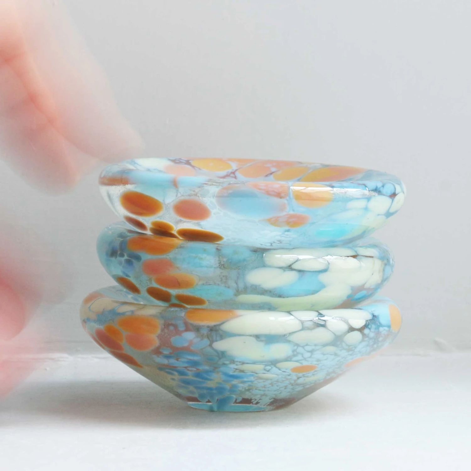 Hand formed with molten glass in our in-studio hot shop, the Puddle is perfect for spare change, jewellery or tiny treasures found on the shore.
