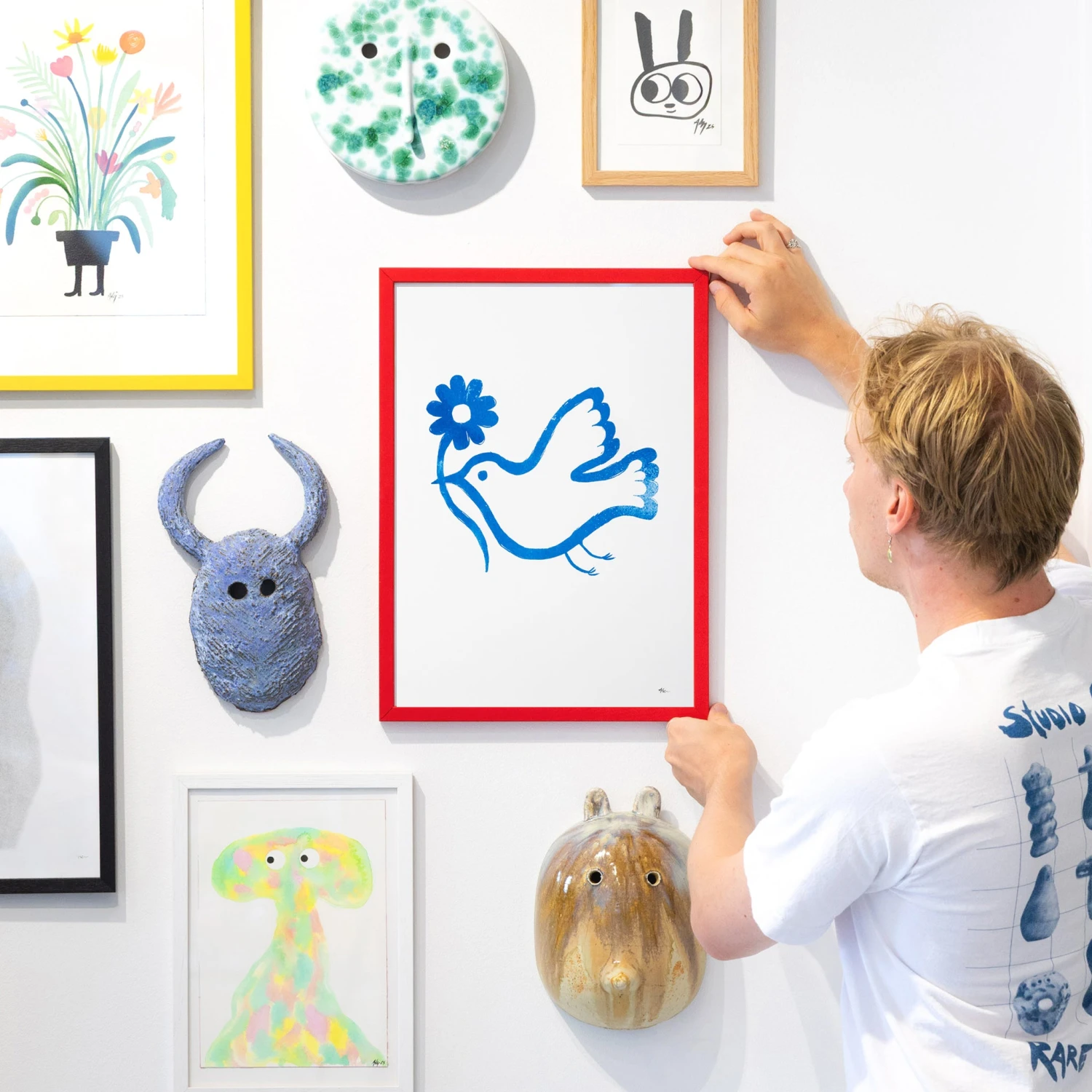 Our Japanese Risograph prints, designed by studio founder Anders Arhoj, are printed by hand and machine, one at a time, here in Copenhagen. These are open edition prints, so they are not numbered or hand signed, but stamped with Anders signature.