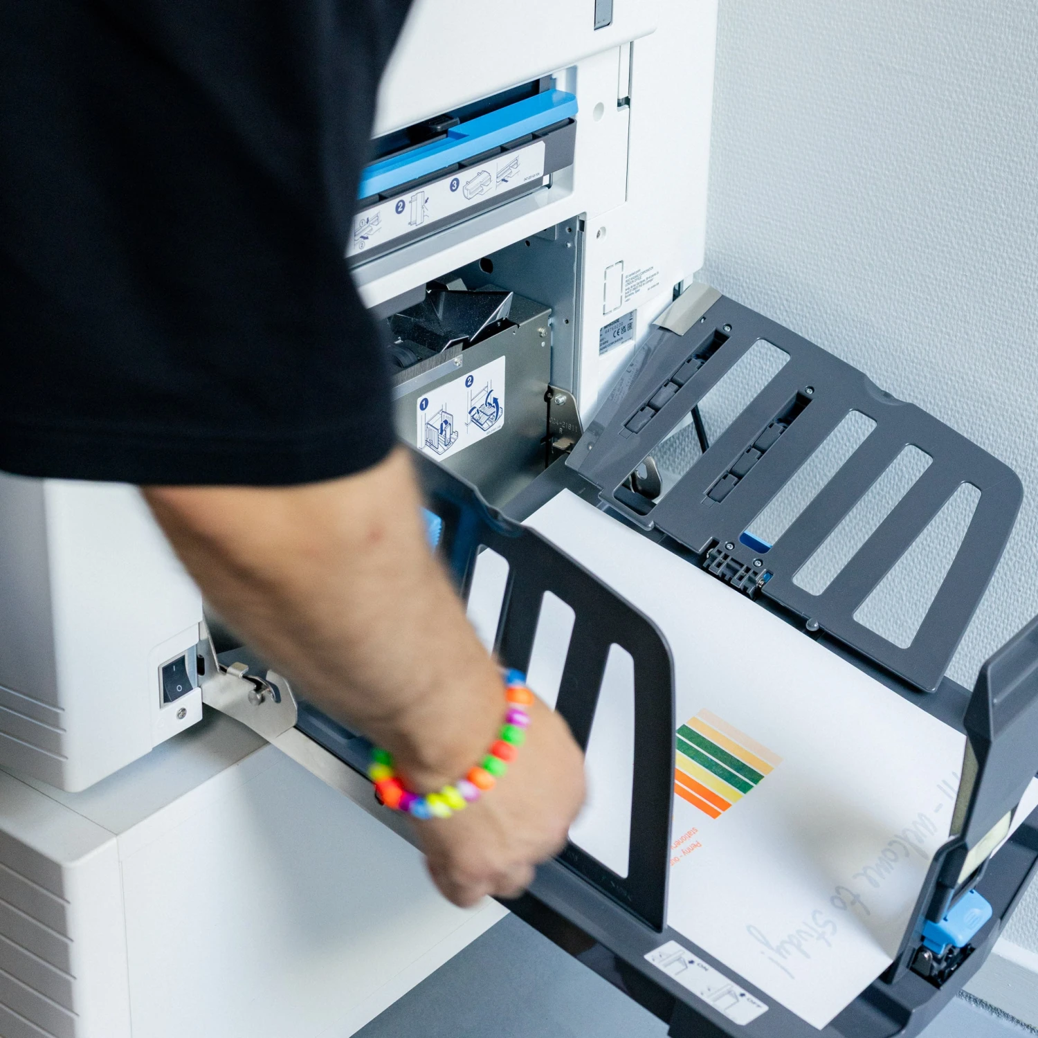 Our Japanese Risograph prints, designed by studio founder Anders Arhoj, are printed by hand and machine, one at a time, here in Copenhagen. These are open edition prints, so they are not numbered or hand signed, but stamped with Anders signature.