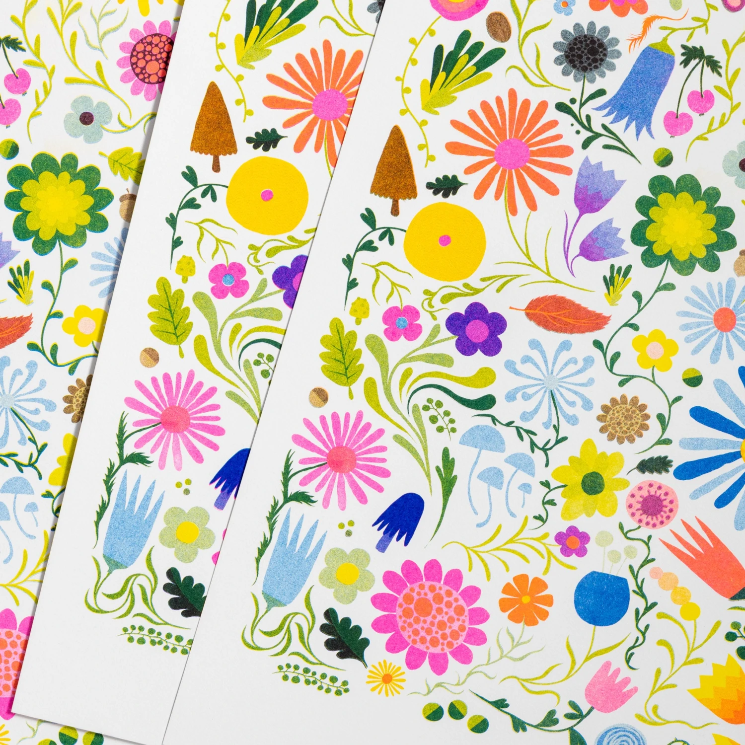 Please note: Riso printing is not always an exact science. Each print may have small markings (roller marks, small machine made smudges, etc) and slightly different alignments in colors. This is part of the unique nature of the process. No two prints are exactly alike. We have checked the prints sold through the internet and believe they are represented well by the photographs.