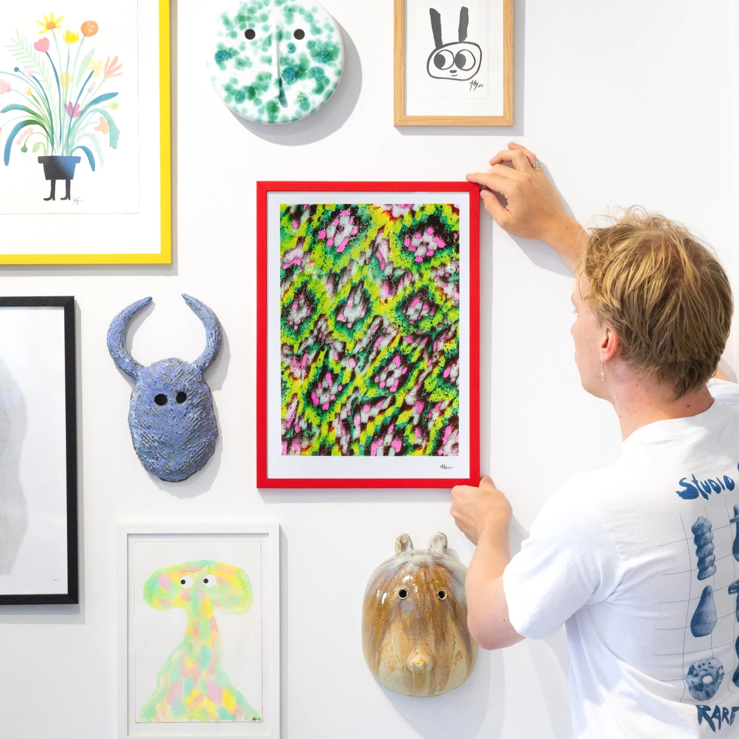 Our Japanese Risograph prints, designed by studio founder Anders Arhoj, are printed by hand and machine, one at a time, here in Copenhagen. These are open edition prints, so they are not numbered or hand signed, but stamped with Anders signature.