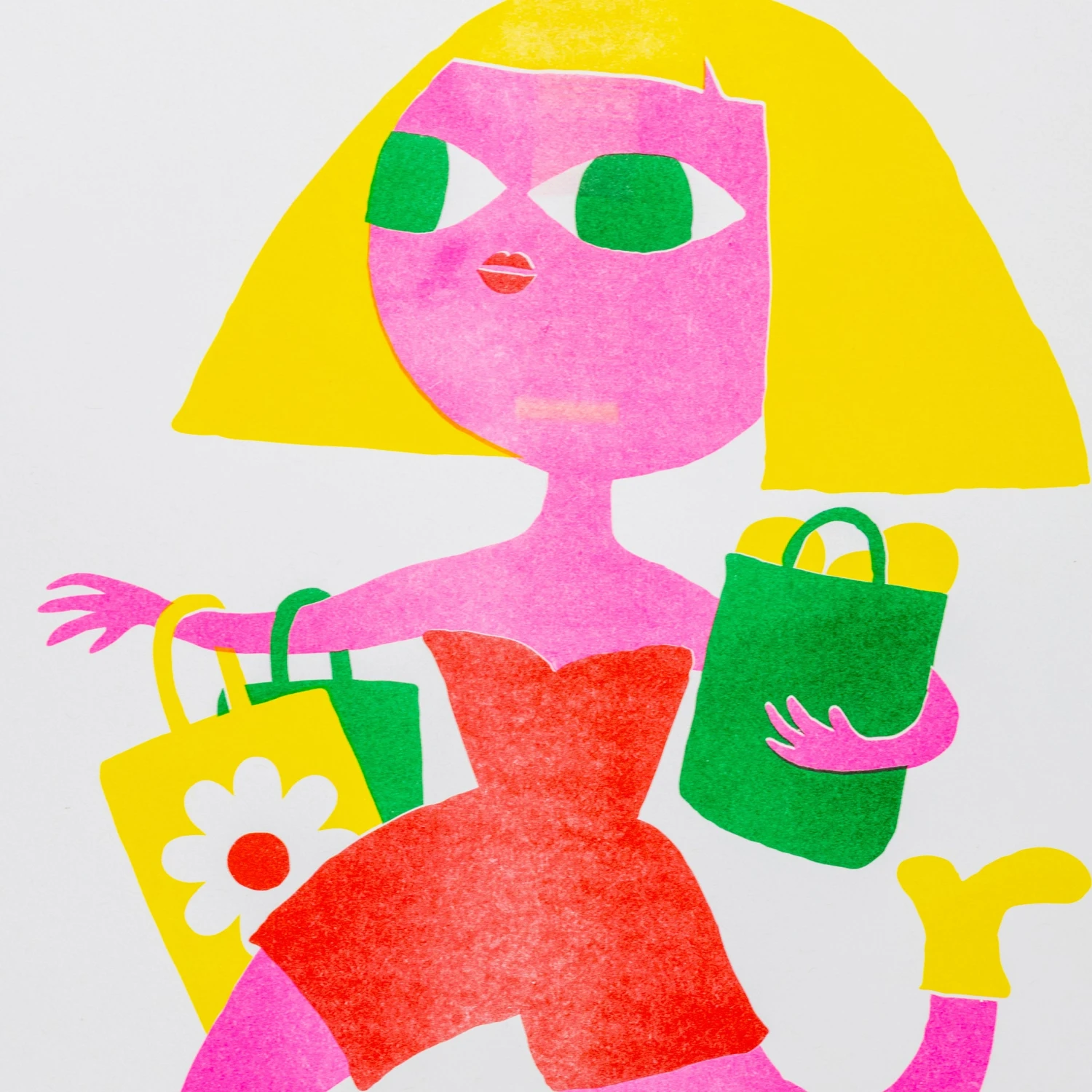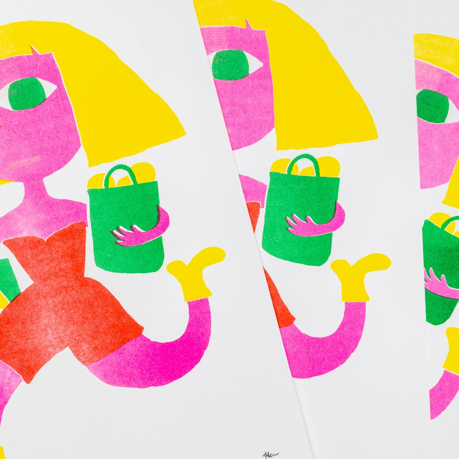 Please note: Riso printing is not always an exact science. Each print may have small markings (roller marks, small machine made smudges, etc) and slightly different alignments in colors. This is part of the unique nature of the process. No two prints are exactly alike. We have checked the prints sold through the internet and believe they are represented well by the photographs.