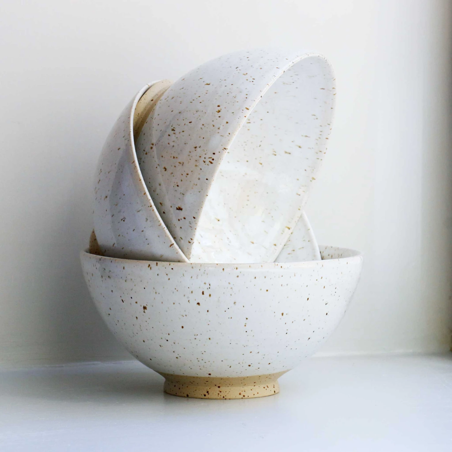 The Spring Bowl is hand-thrown in speckled stoneware clay and decorated in a wide range of natural, funky and earthy glazes.