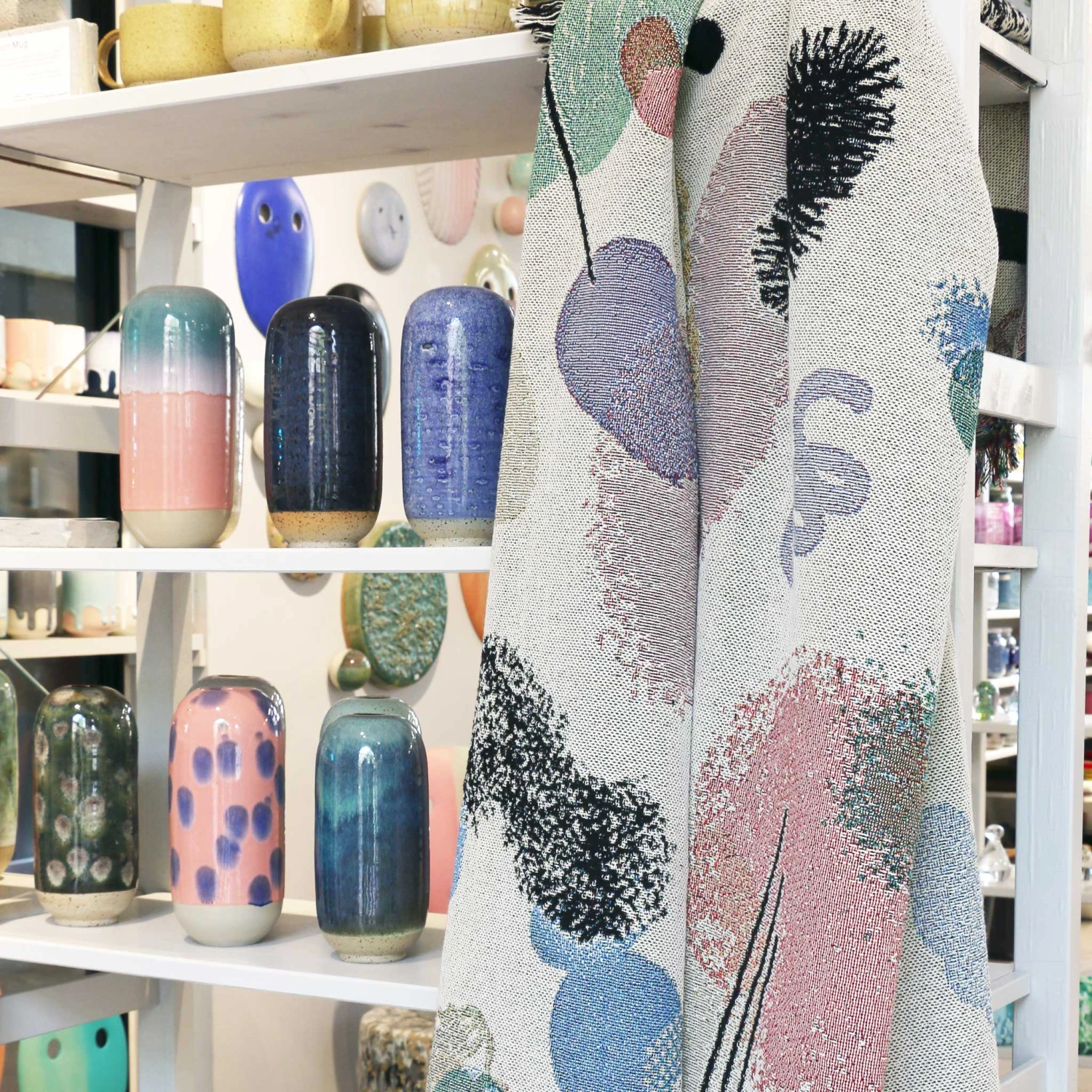 Add a pop of fun and color to your favorite chair with our Throw Blankets. Digitally woven in the USA, each blanket is made with a 95% new and recycled cotton mix and 5% nylon (for strength in the trim).