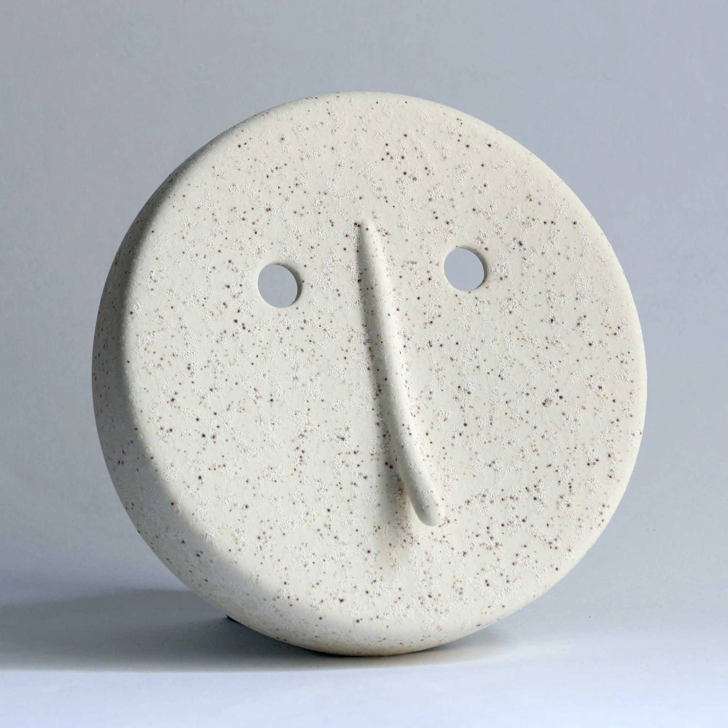 Our Tomo Masks are hand cast and glazed, low-fired earthenware forms inspired by ancient gods and futuristic visions. Each Tomo (friend in Japanese) will hang on your wall and keep a watchful gaze.