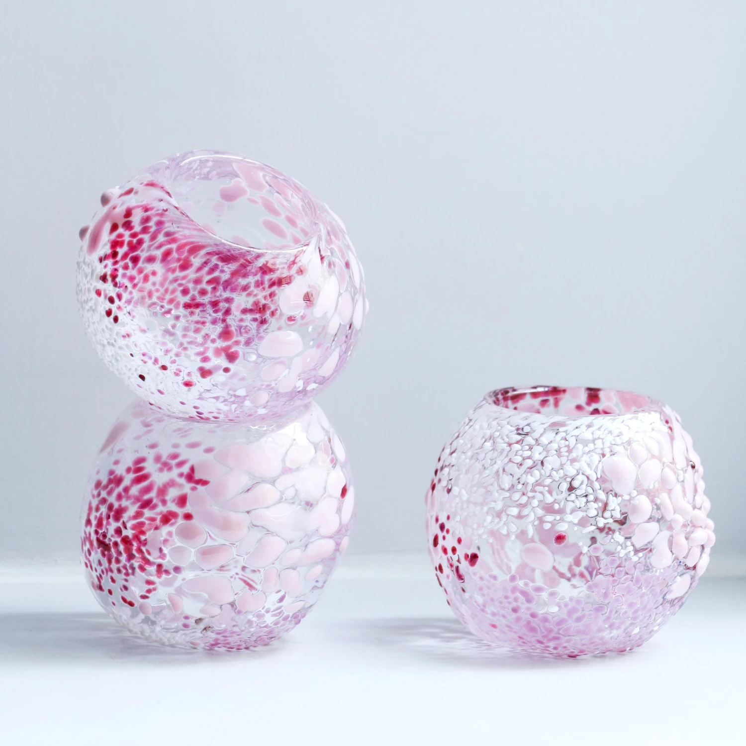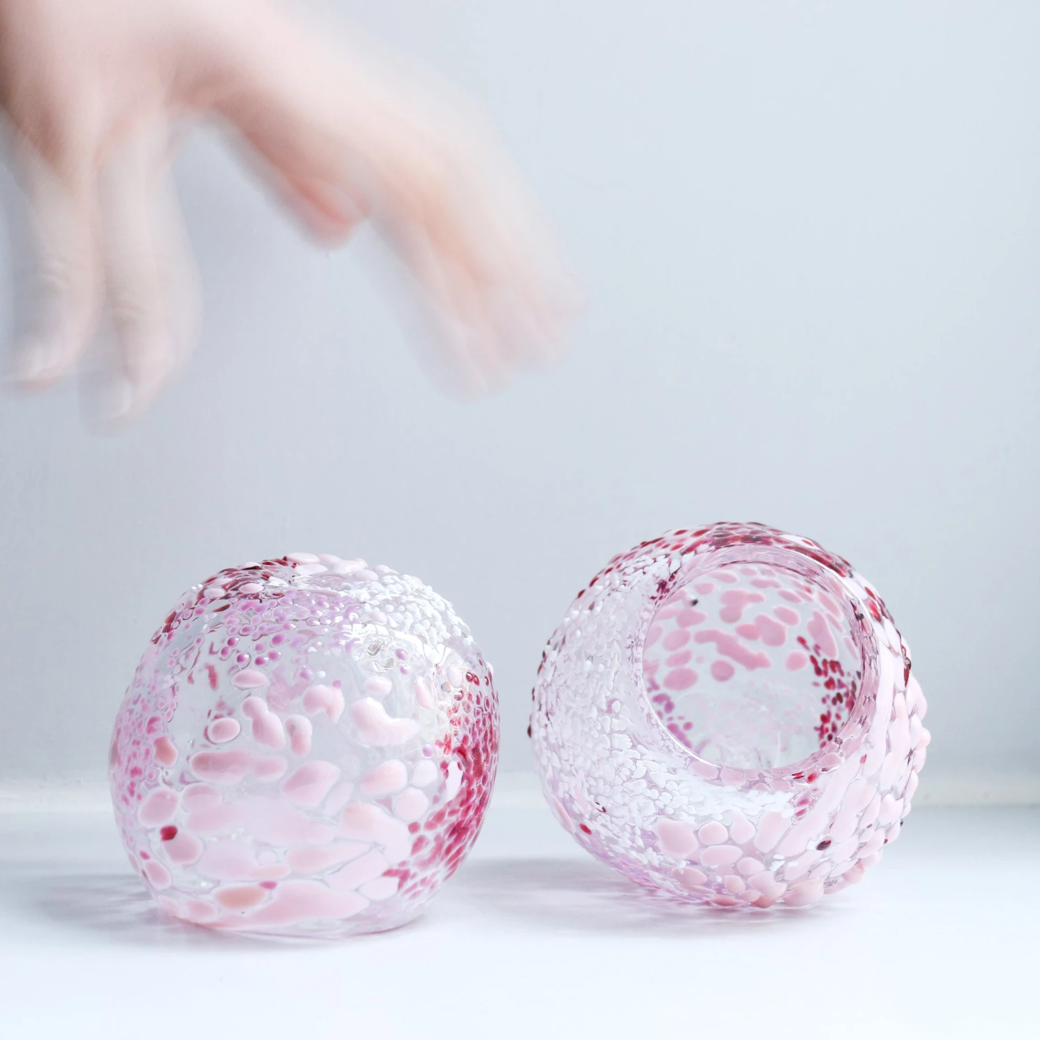 Each tea light holder will glow and cast shadows differently, according to the unique elements of the glass.